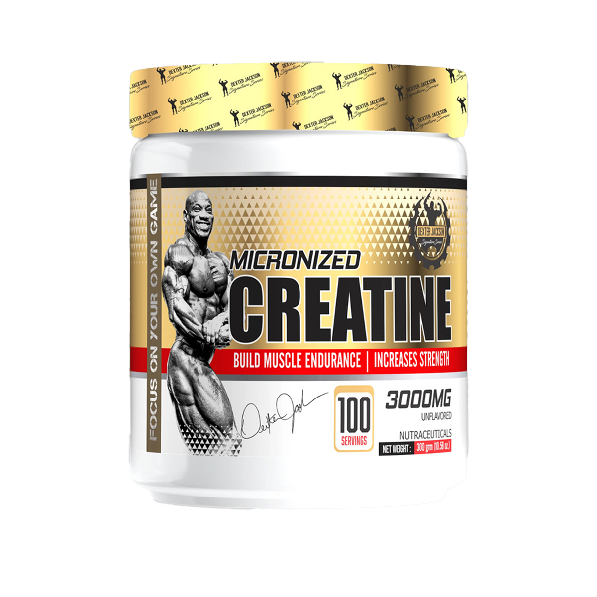 Dexter Jackson Creatine هو مكمل غذائي يحتوي على 5 غرامات من الكرياتين مونوهيدرات النقي في كل حصة.